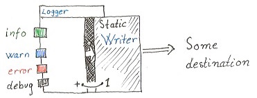 The logger has methods for each severity level defined by RFC5424 6.2.1.